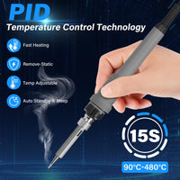 - Fast heating and precise temperature control: soldering stations have 60 W power, can be heated up to 300 °C in 15 seconds, highest temperature can reach 480 °C, PID technology temperature control is precise, safer and more convenient to use. Can be in 90 °C - 480 °C, if you choose the right temperature, you can press and hold the "NO/OFF". "to lock,by The LED display can also know the temperature degrees, the temperature will be stable when using better results.
