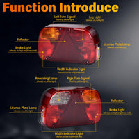 - 【6 functions】: rear lights trailer has 6 functions, there are indicators, wide lights, fog lights, brake lights, reversing lights and number plate lights, which can work reliably even in extremely bad weather and also provide safety for your driving.